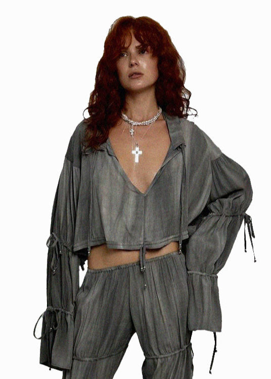 Shirt with a complex cut made of light flowing viscose.