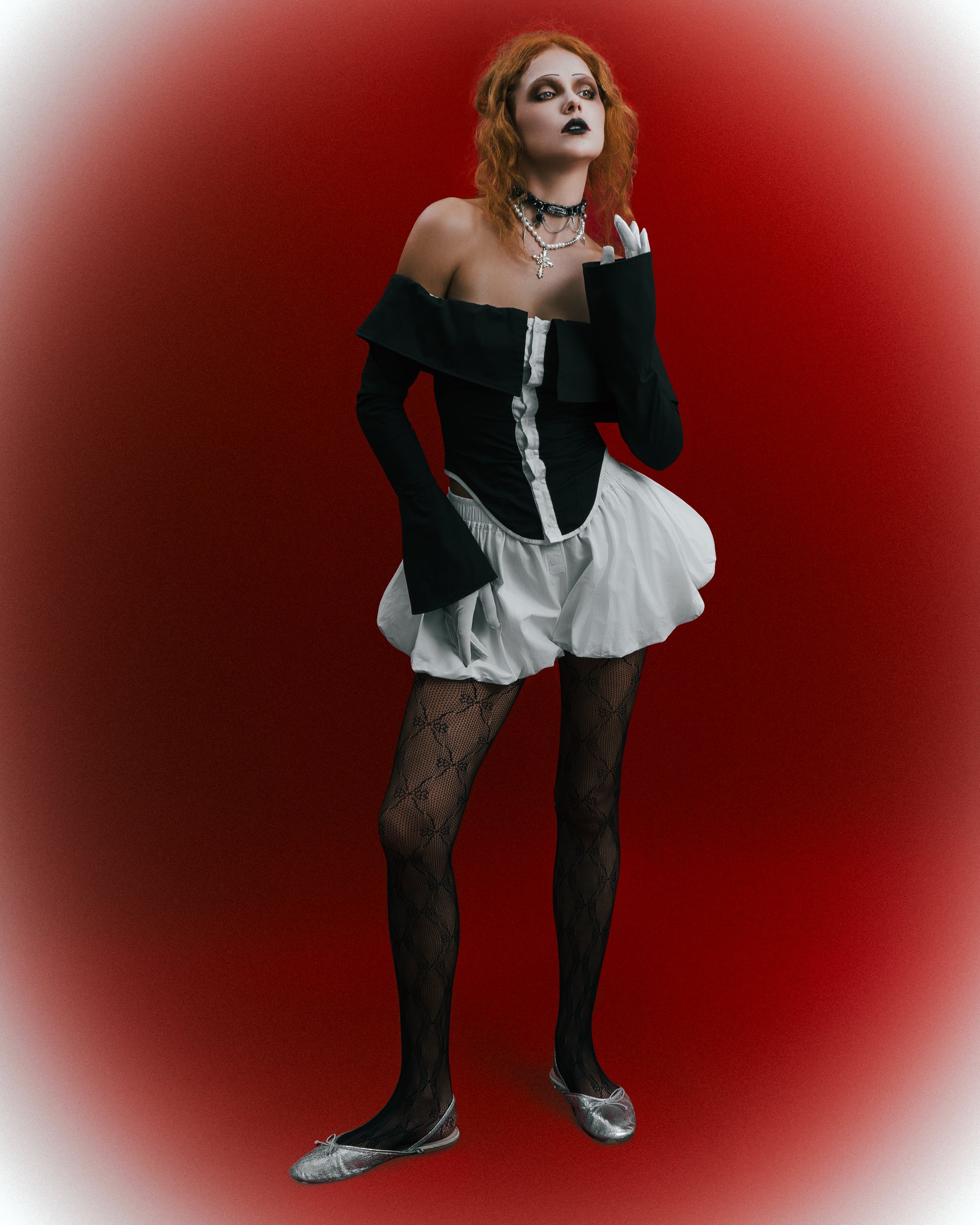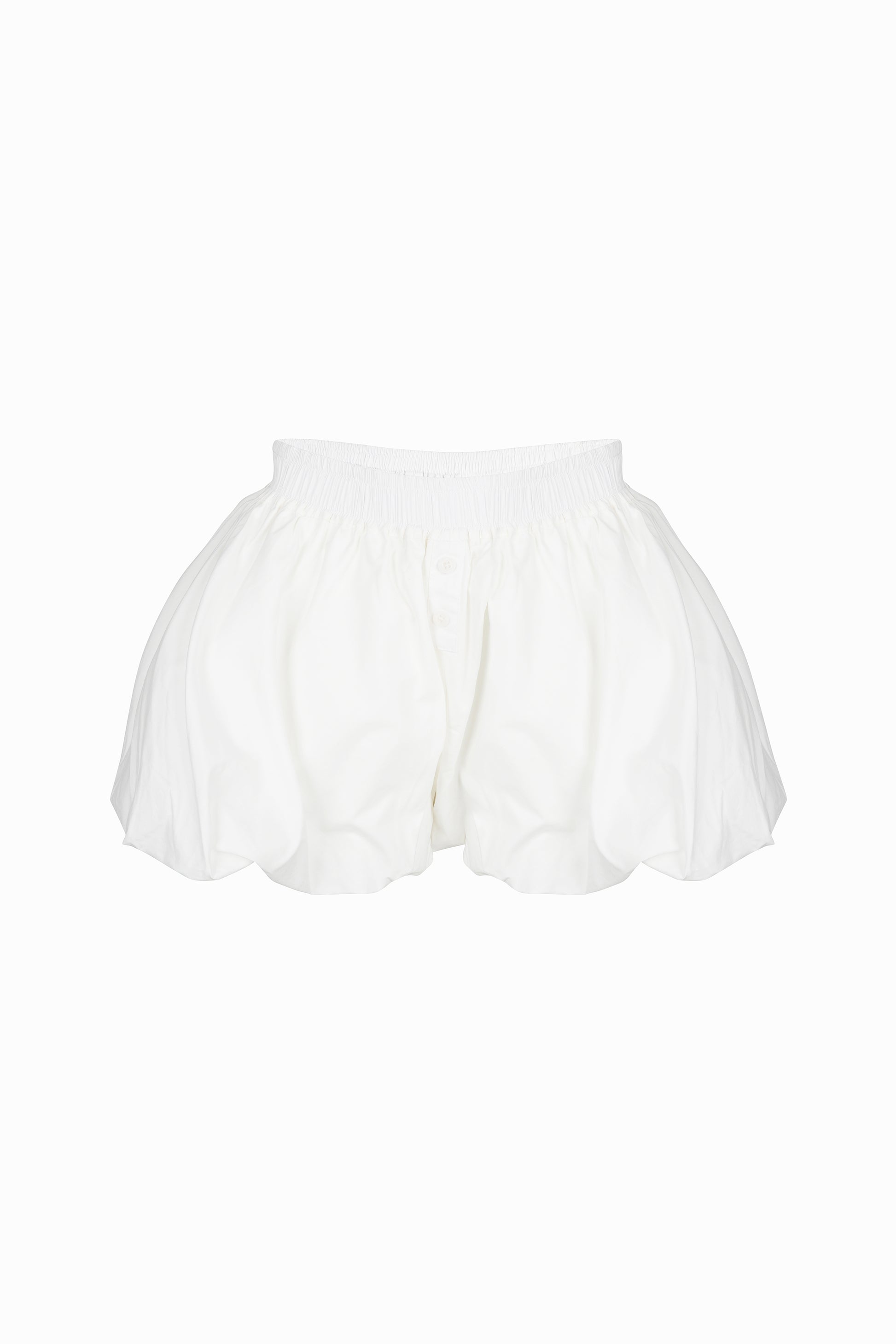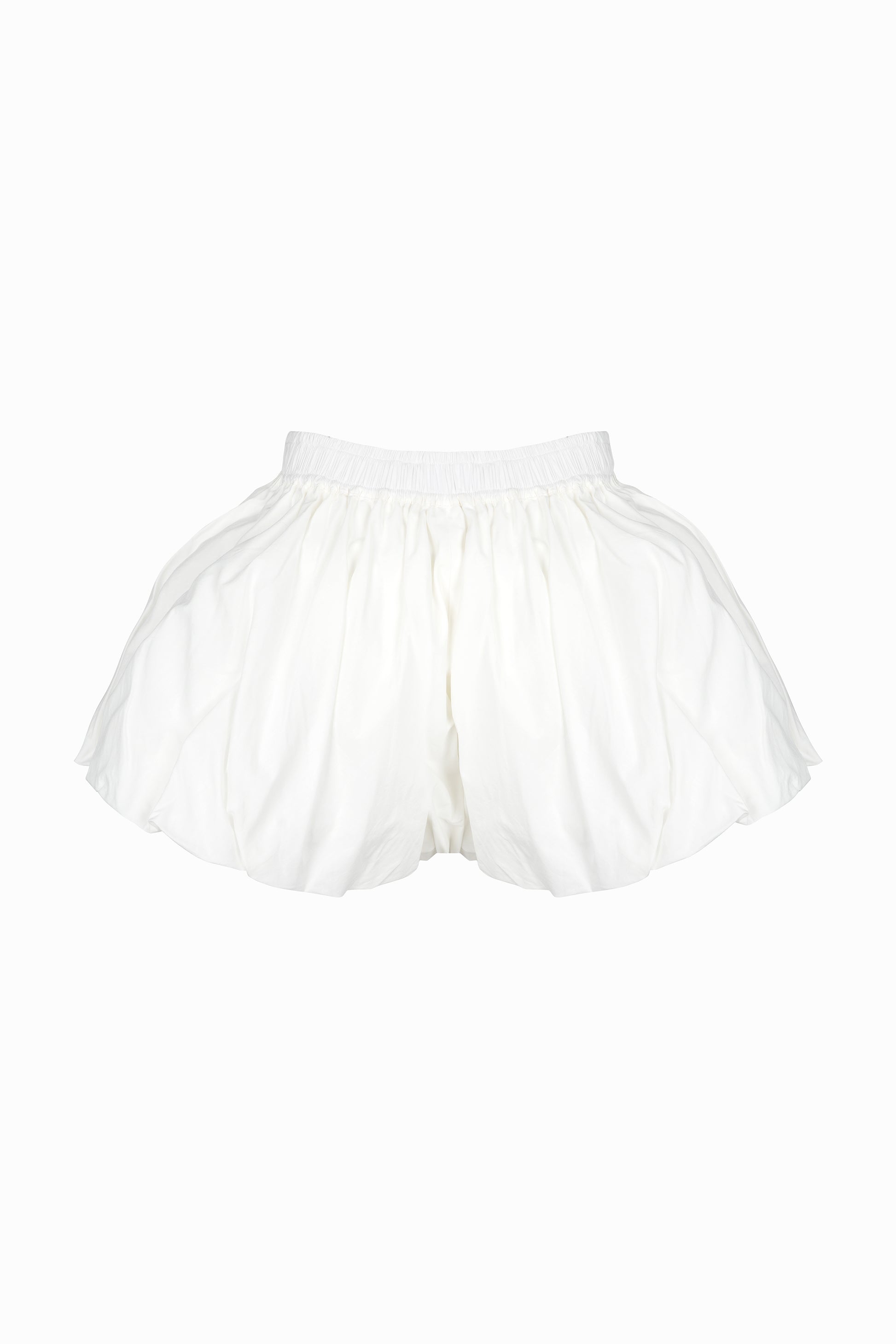 Skort with an elastic waistband. The front features a decorative button placket, and the inner side is made from the same fabric as the waistband. The piece is reversible and can be worn on both sides. Made from 100% cotton