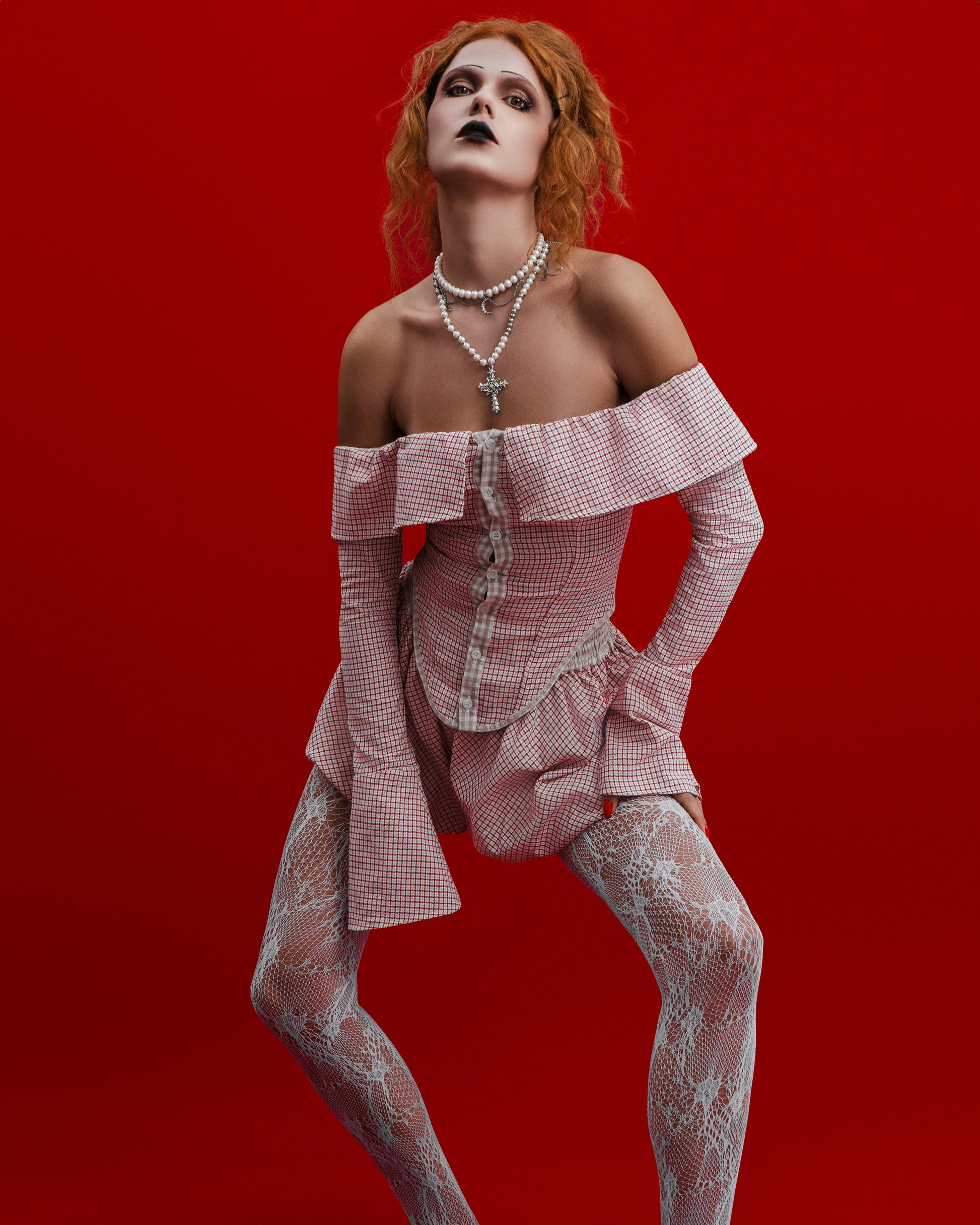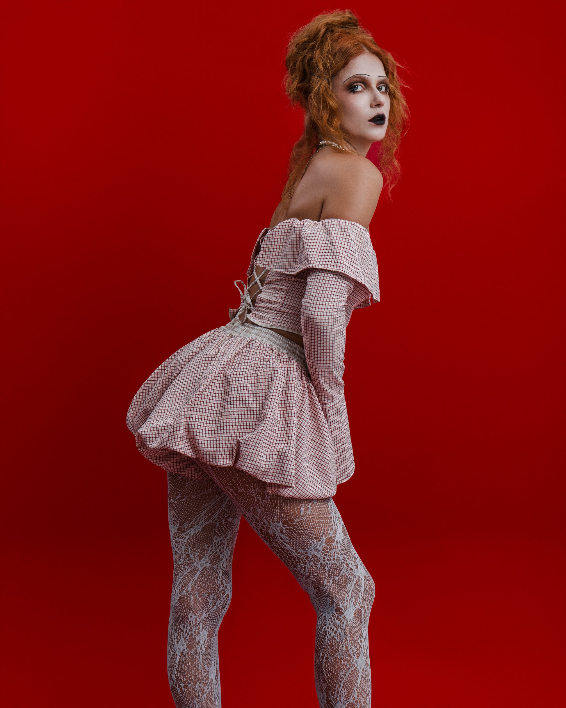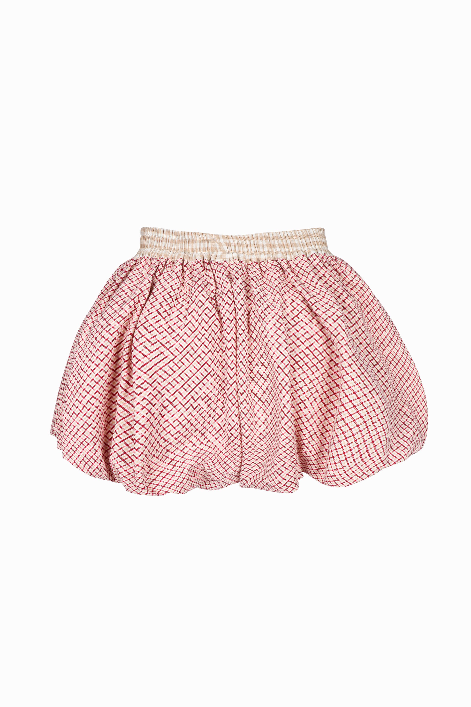 Skort with an elastic waistband. The front features a decorative button placket, and the inner side is made from the same fabric as the waistband. The piece is reversible and can be worn on both sides. Made from 100% cotton